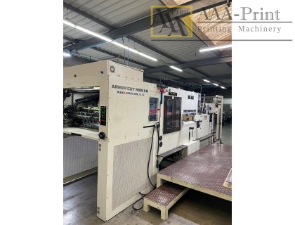 NIKKO N105 XR Arrow Cut; DIE-CUTTING + STRIPPING Made in Japan machine ; Year 2001, counter arond 42 k/hours ; Maxi Size: 1050 × 750 mm (41.3″ × 29.5″); Mini Size: 400 × 350 mm (15.7″ × 13.7″); Maximum Pressure: 300 tons; Maxi Speed: 7500 sh/hour ; Pre-lPrice on request - 5 colors