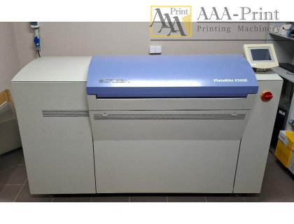 CTP 4-up Thermal PlateSetter; Counter: 104093 Plates - Exposure time: 7609 Hours; Equipped with AGFA developing machine and stacker; RIP trueflow; Technical Description: . 16-channel infrared laser diodes; . Plate size: Min. 324 x 370 mm - Max. 830 x 660Price on request - Various types of equipment