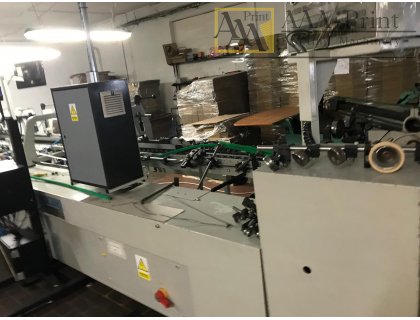 Universal folder-gluer for folding carton boxes; Ser nr. 68520/66; 3 gluing points; Crash bottom lock; Convertible stock; Solid up to 700 g/m2; Corrugate up to B flute; Thickness 8 mm; Sizes: standard boxes (blanks open); Width max 930 mm; Width mi14500 EUR FCA